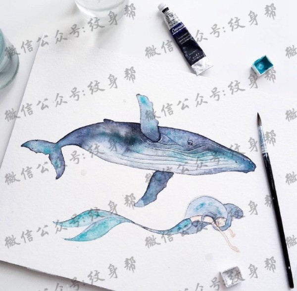 鲸鱼纹身手稿_十几张水彩鲸鱼手稿纹身图案素材
