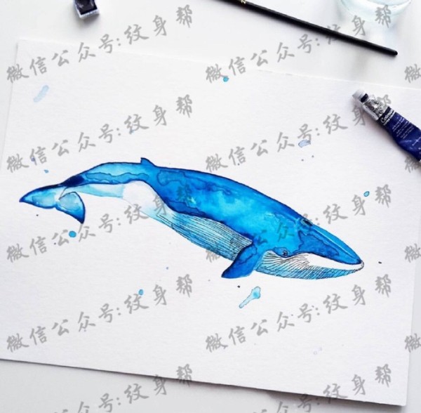 鲸鱼纹身手稿_十几张水彩鲸鱼手稿纹身图案素材