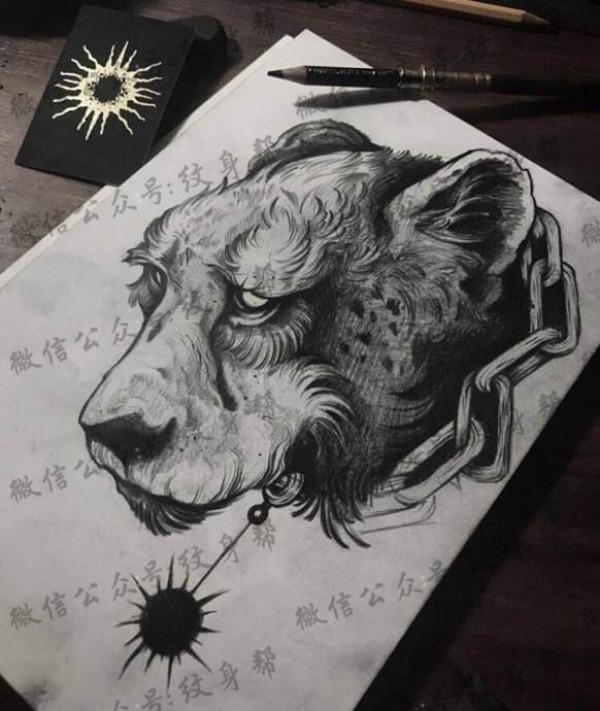 半甲唐狮手稿 传统的9款唐狮主题半甲纹身手稿图片