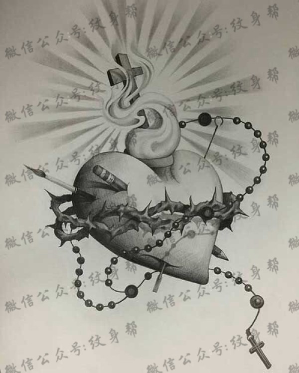 圣心纹身手稿--9张纹身圣之心手稿图案欣赏