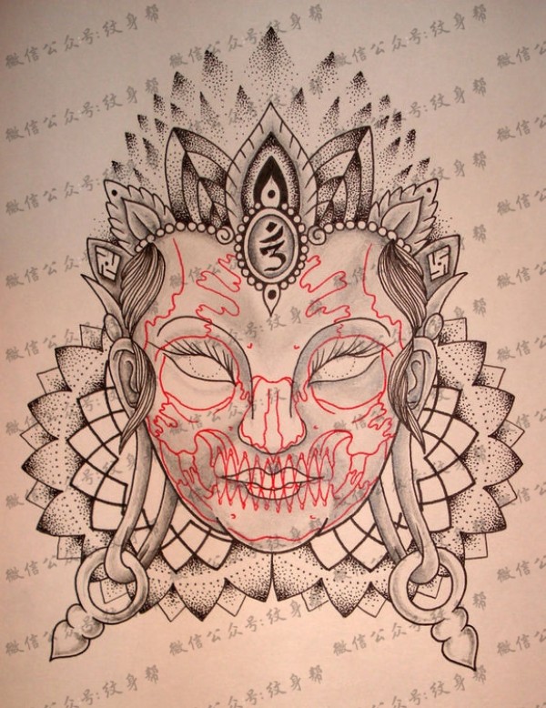 传统艺妓般若纹身图案手稿