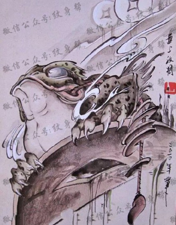 半甲唐狮手稿 传统的9款唐狮主题半甲纹身手稿图片
