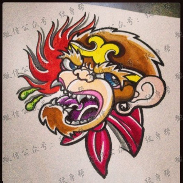 半甲唐狮手稿 传统的9款唐狮主题半甲纹身手稿图片