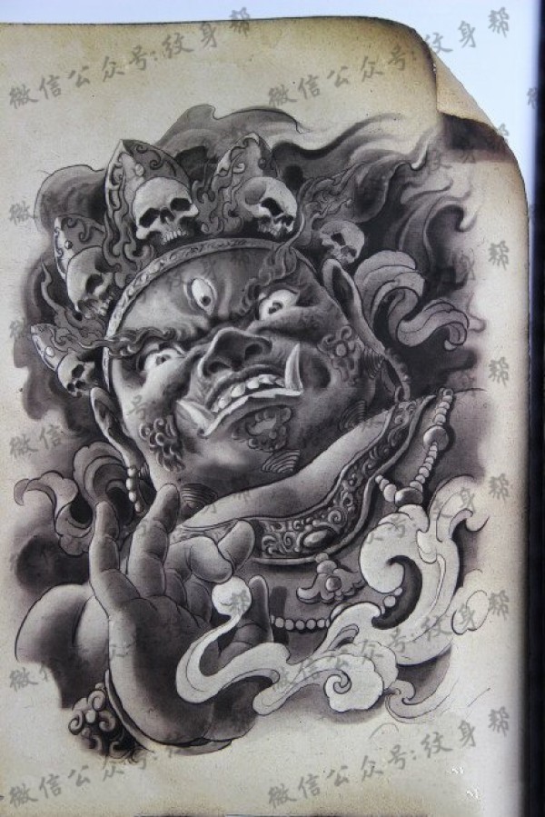 半甲唐狮手稿 传统的9款唐狮主题半甲纹身手稿图片