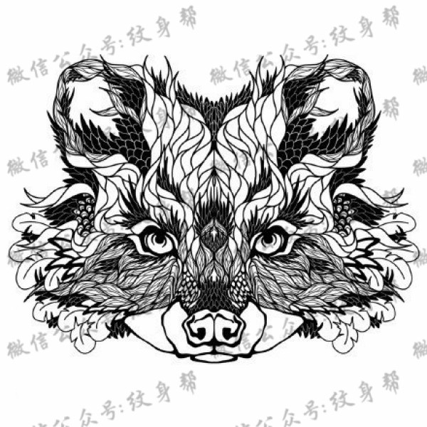半甲唐狮手稿 传统的9款唐狮主题半甲纹身手稿图片