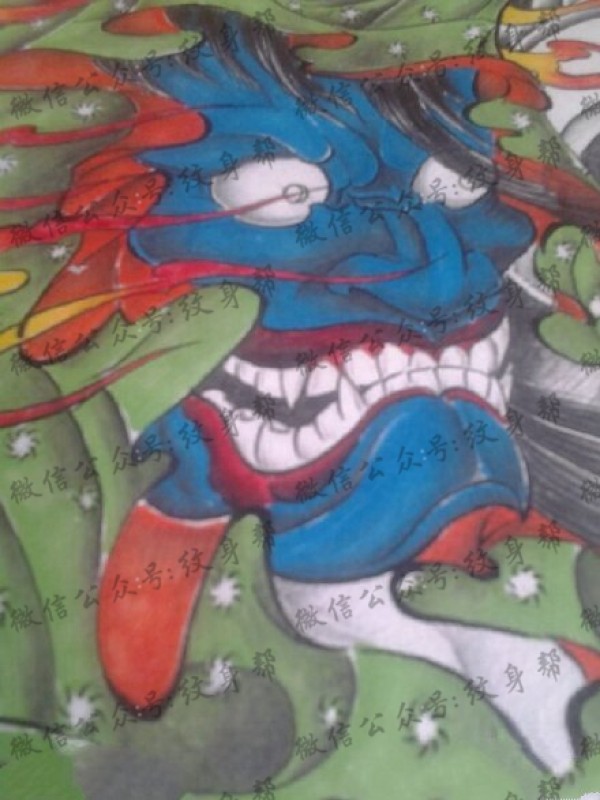 半甲唐狮手稿 传统的9款唐狮主题半甲纹身手稿图片