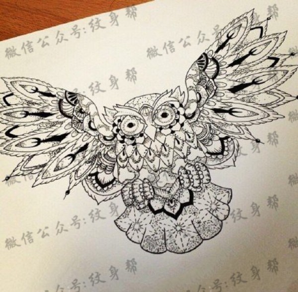 经典梵花猫头鹰纹身图案