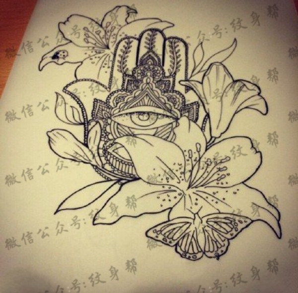 经典梵花手臂百合花纹身图案