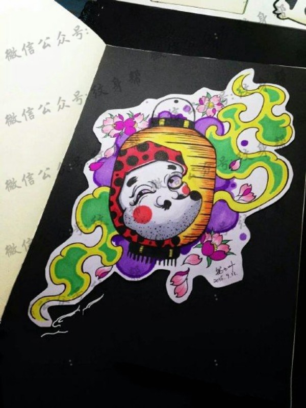 手稿彩色达摩蛋纹身图案