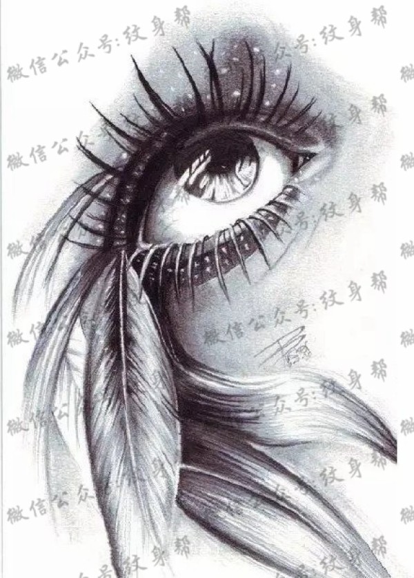 手臂素描羽毛眼睛纹身图案