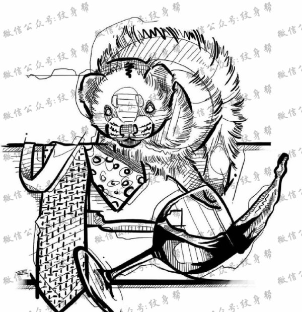 半甲唐狮手稿 传统的9款唐狮主题半甲纹身手稿图片