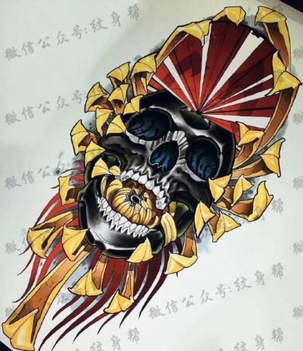 一组满背大气九龙拉棺纹身图案作品和手稿