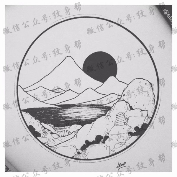 日月山脉简约纹身手稿一组9张