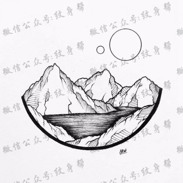 日月山脉简约纹身手稿一组9张