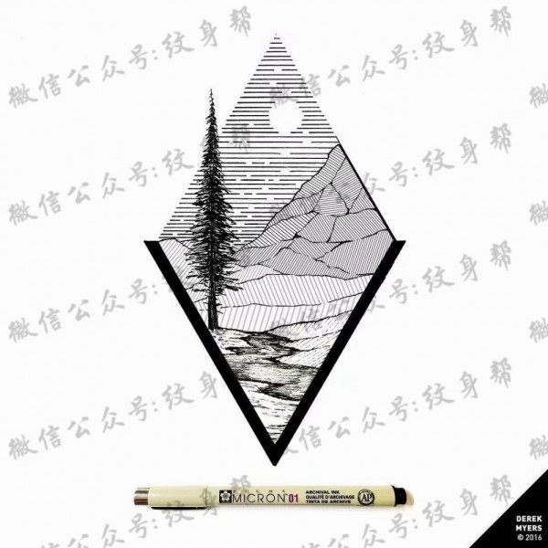 日月山脉简约纹身手稿一组9张