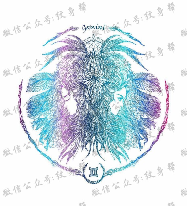 双子座纹身手稿_29张十二星座之双子座纹身图案手稿