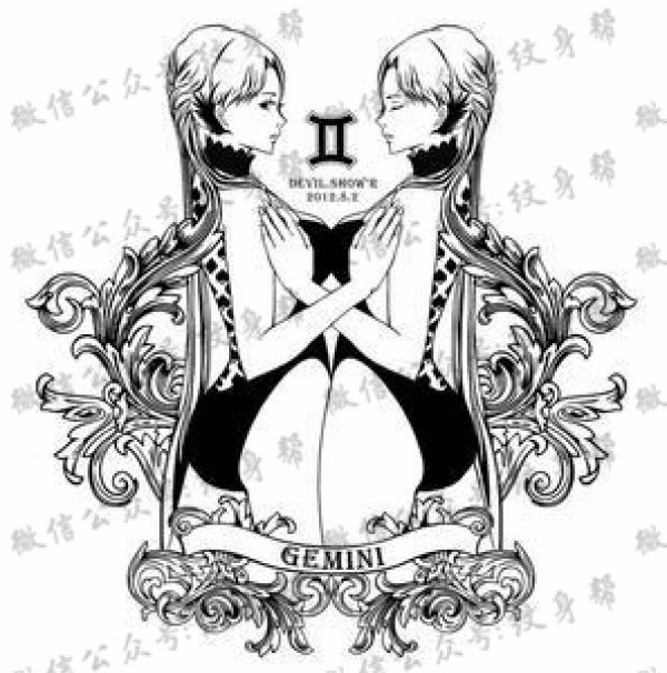 双子座纹身手稿_29张十二星座之双子座纹身图案手稿