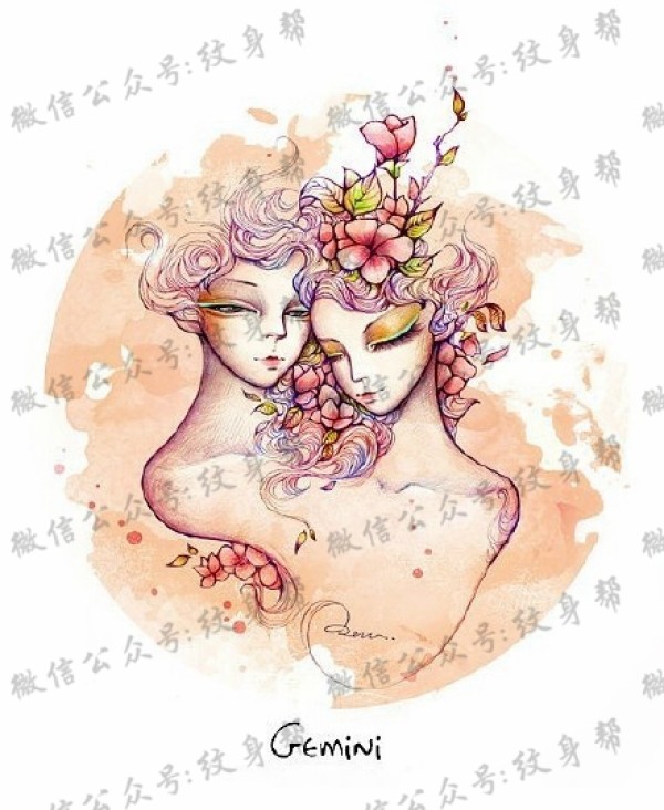 双子座纹身手稿_29张十二星座之双子座纹身图案手稿