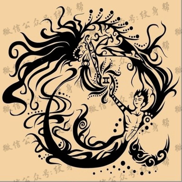 双子座纹身手稿_29张十二星座之双子座纹身图案手稿