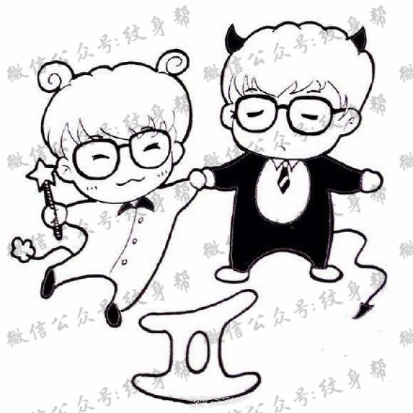 双子座纹身手稿_29张十二星座之双子座纹身图案手稿