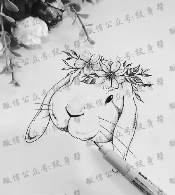 小兔子纹身手稿_一组26张可爱小兔子纹身手稿图案