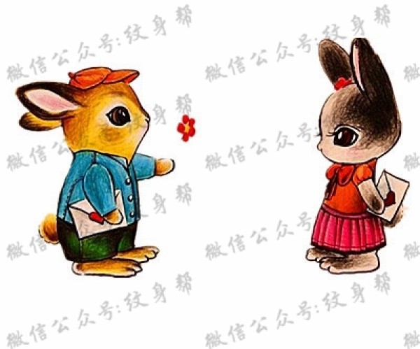 小兔子纹身手稿_一组26张可爱小兔子纹身手稿图案