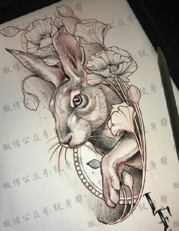 小兔子纹身手稿_一组26张可爱小兔子纹身手稿图案