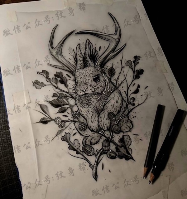小兔子纹身手稿_一组26张可爱小兔子纹身手稿图案