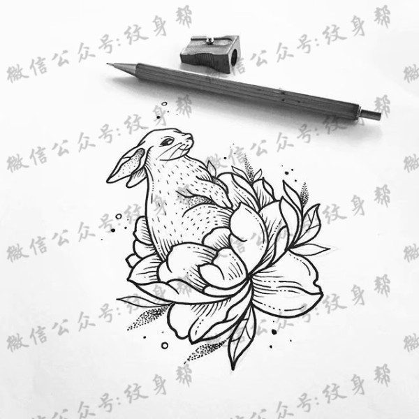 小兔子纹身手稿_一组26张可爱小兔子纹身手稿图案