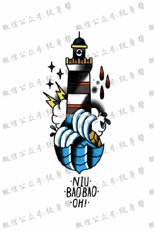 灯塔纹身手稿_一组24张灯塔手稿纹身图案