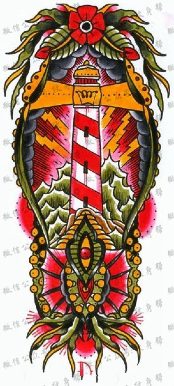 灯塔纹身手稿_一组24张灯塔手稿纹身图案