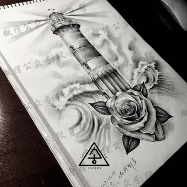 灯塔纹身手稿_一组24张灯塔手稿纹身图案