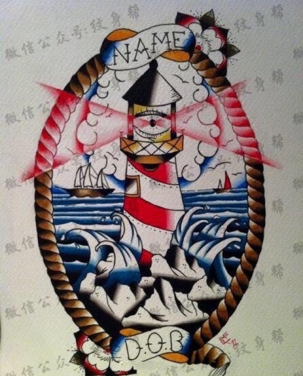 灯塔纹身手稿_一组24张灯塔手稿纹身图案