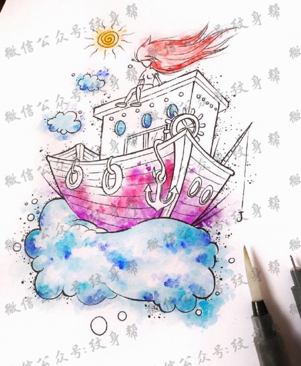 水彩点刺手稿_9张漂亮的水彩点刺纹身刺青手稿图案