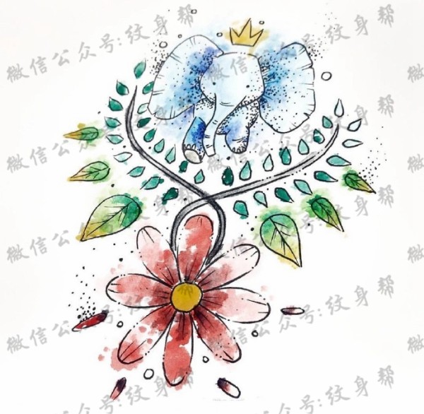 水彩点刺手稿_9张漂亮的水彩点刺纹身刺青手稿图案