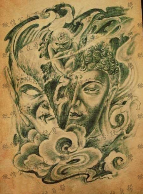 一组满背大气九龙拉棺纹身图案作品和手稿
