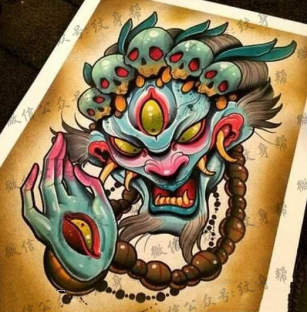 半甲唐狮手稿 传统的9款唐狮主题半甲纹身手稿图片