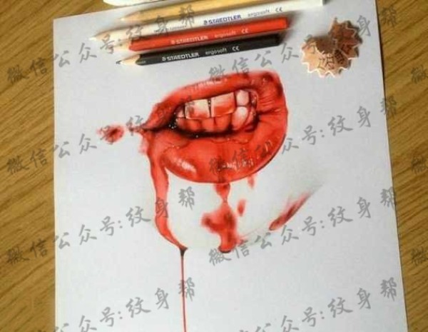 手稿亲吻嘴唇纹身图案