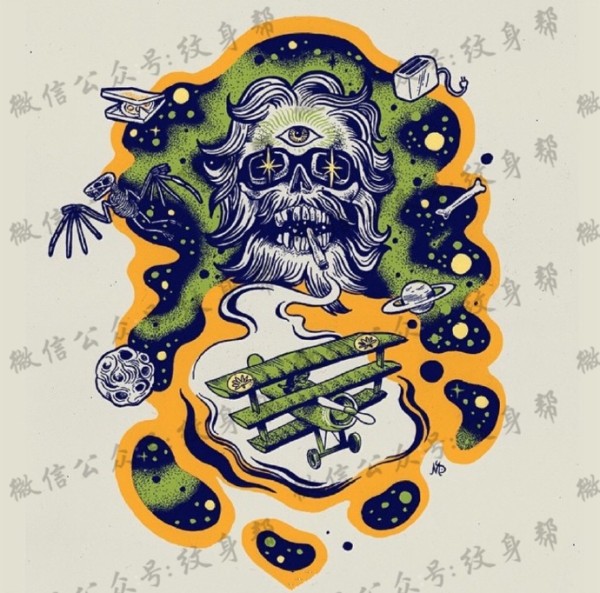 欧美复古插画手稿_9张彩色欧美复古风格插画纹身手稿图案