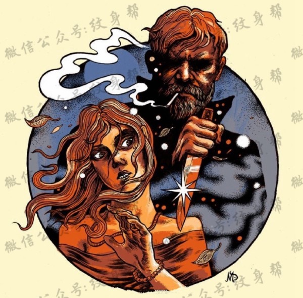 欧美复古插画手稿_9张彩色欧美复古风格插画纹身手稿图案