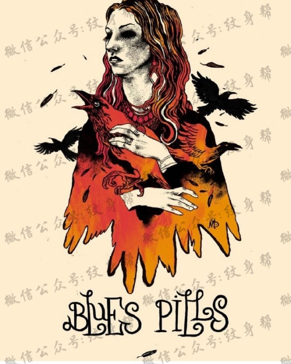 欧美复古插画手稿_9张彩色欧美复古风格插画纹身手稿图案