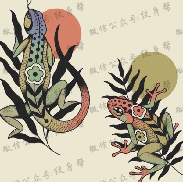 半甲唐狮手稿 传统的9款唐狮主题半甲纹身手稿图片