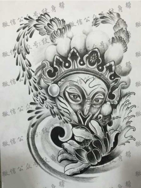 半甲唐狮手稿 传统的9款唐狮主题半甲纹身手稿图片