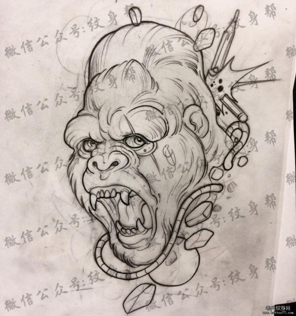 半甲唐狮手稿 传统的9款唐狮主题半甲纹身手稿图片
