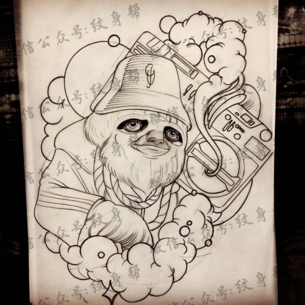 传统狸猫纹身图案手稿