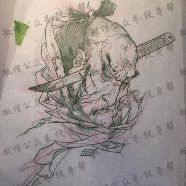 日式生首纹身图案手稿