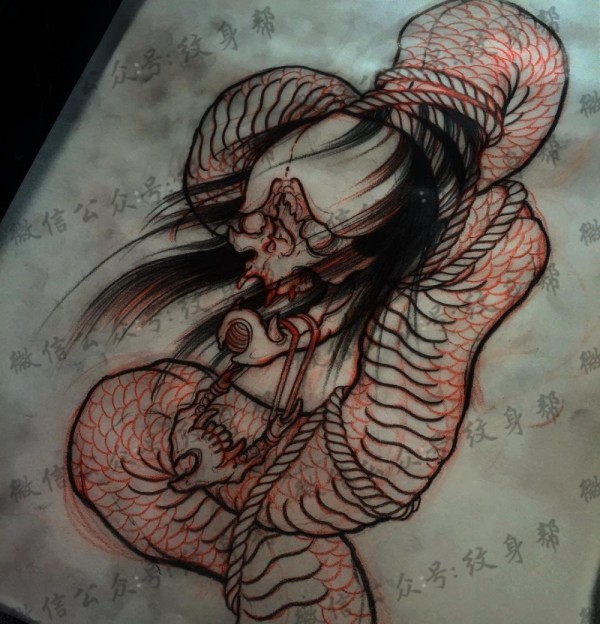 一组满背大气九龙拉棺纹身图案作品和手稿