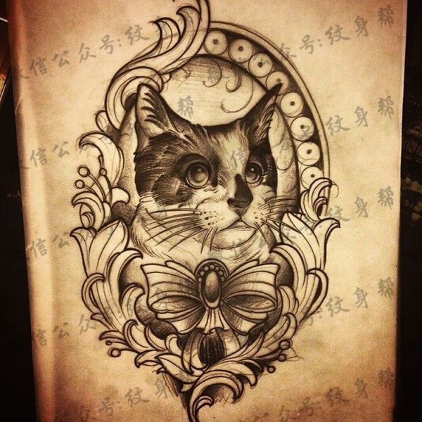 new school猫纹身图案手稿