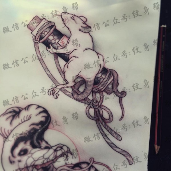 日式传统老鼠纹身图案手稿