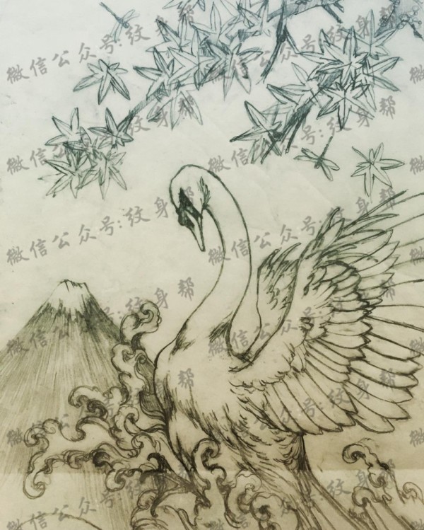 传统天鹅纹身图案手稿